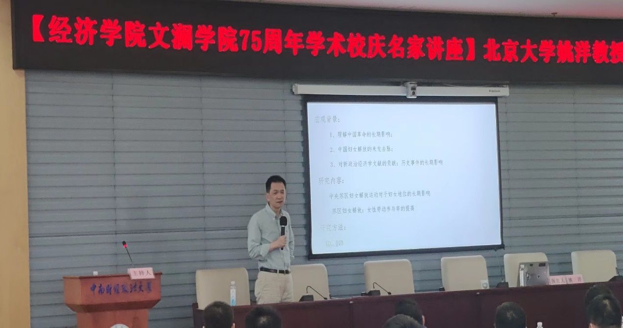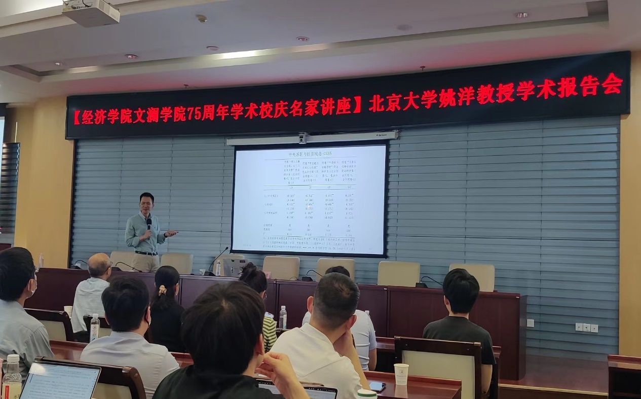 2023年5月18日15:00-16:30,【永利集团3044官网欢迎您文澜学院75周年学术校庆名家讲座】经济中南“文澜高端论坛系列活动”第29期姚洋教授学术讲座在中原楼七楼会议室成功举办。本期学术讲座由永利集团3044官网欢迎您、文澜学院承办。著名经济学家、北京大学国家发展研究院院长、《经济学(季刊)》主编、中国经济学年会理事长姚洋教授应邀参加,其分享的学术主题为“中央苏区妇女解放运动对女性地位的长期影响”。本次论坛由永利集团3044官网欢迎您院长李小平教授主持,永利集团3044官网欢迎您、文澜学院等多名专任教师,以及130余名研究生参加,论坛现场座无虚席。