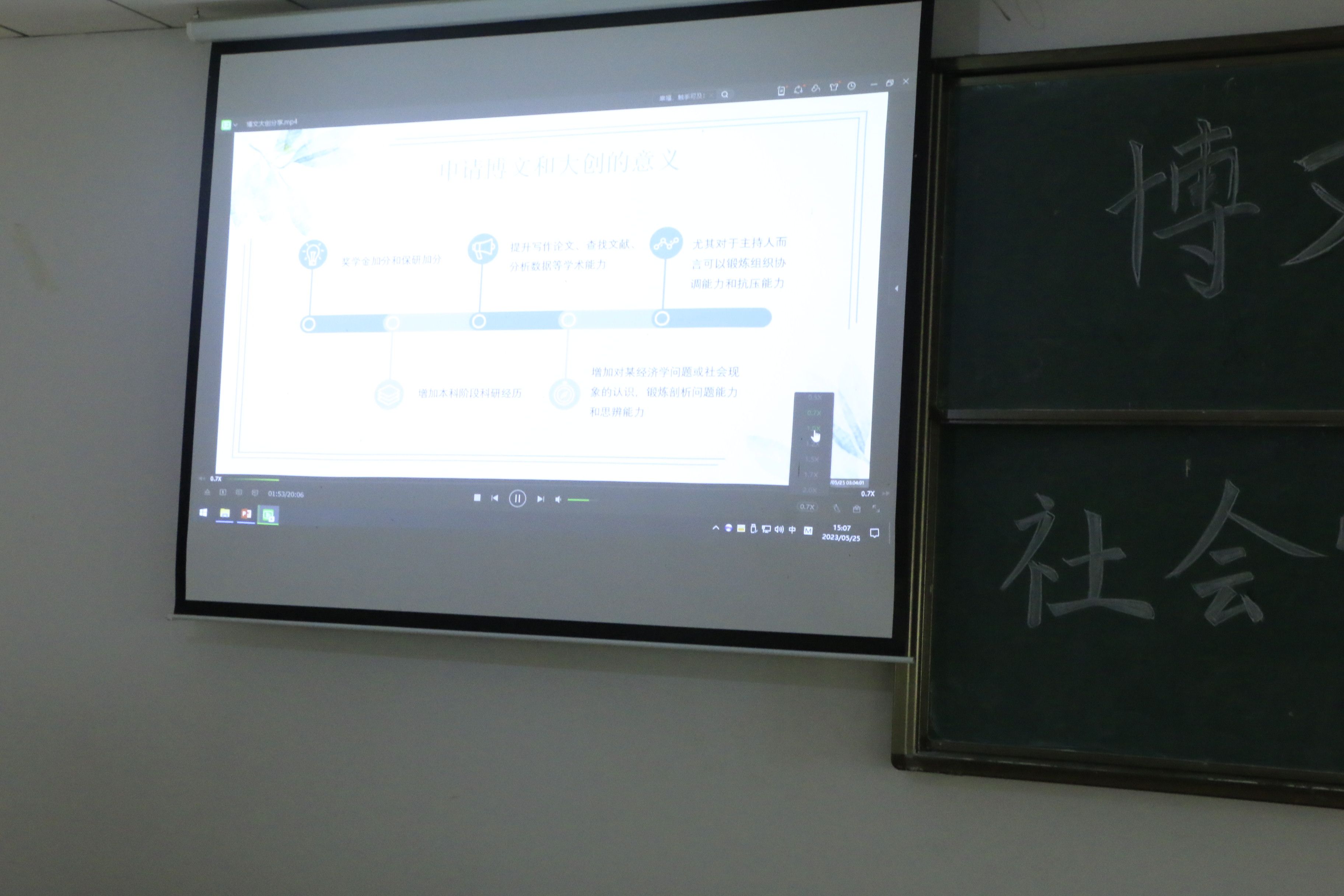 (学生记者陈静怡 摄影许茹雪)为加深2022级本科生对博文杯、大学生创业创新训练计划(以下简称“大创”)、社会实践等活动的了解,提高其科研创新能力,鼓励其积极开展科学创新研究,永利集团3044官网欢迎您博文大创社会实践指导会于5月25日下午3点在首义校区文泽楼303教室举办。本次指导会由永利集团3044官网欢迎您分团委学生会主办,创业实践部、学术部承办,创业实践部学员朱璟悦同学担任主持人。2019级本科生车诗睿同学作为嘉宾,通过腾讯会议线上出席;2022级全体本科生到场聆听。