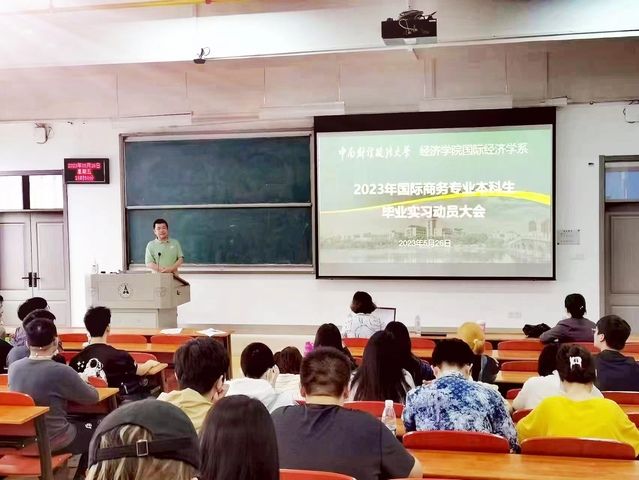 为切实做好2023年本科生毕业实习工作,确保实习质量和实习安全,5月26日下午,永利官网国际经济学系国际商务专业本科生毕业实习动员大会在南附楼303教室顺利召开。动员大会由国际经济学系主任潘安老师主持,国际经济学系副主任吴姗姗老师、实习带队老师杨艳红老师、2020级辅导员孟庆红老师、2020级国际商务专业本科生以及2021级国际商务中法班本科生参与了本次会议。