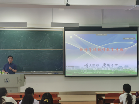 五月,永利集团3044官网欢迎您2019级本科生在南附楼203开展了诚信教育主题活动,由院党委副书记俞凡主讲。俞凡从社会主义核心价值观入题,指出诚信是公民道德的基石,既是做人做事的道德底线,也是社会运行的基本条件。现代社会不仅是物质丰裕的社会,也应是诚信有序的社会;市场经济不仅是法治经济,也应是信用经济。“人而无信,不知其可也”。失去诚信,个人就会失去立身之本,社会就失去运行之轨。诚信是中华民族的传统美德,是全人类所认同的道德规范,诚信对于维护社会稳定提升社会的经济发展等方面都具有重大的意义。