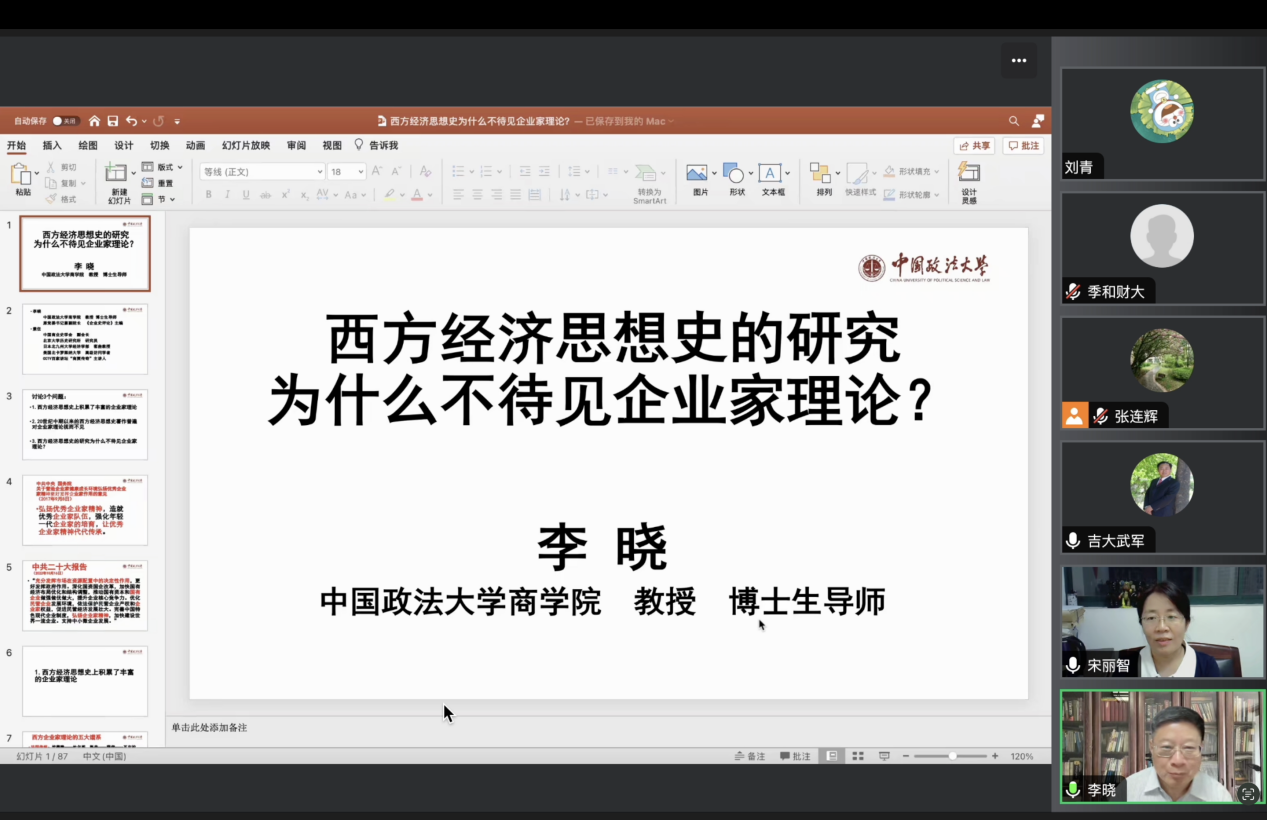 (通讯员 刘青)9月4日晚,中国政法大学李晓教授应永利官网邀请,做了一场题为“西方经济思想史的研究为什么不待见企业家理论?”的线上讲座。讲座由永利集团3044官网欢迎您副院长宋丽智教授主持。