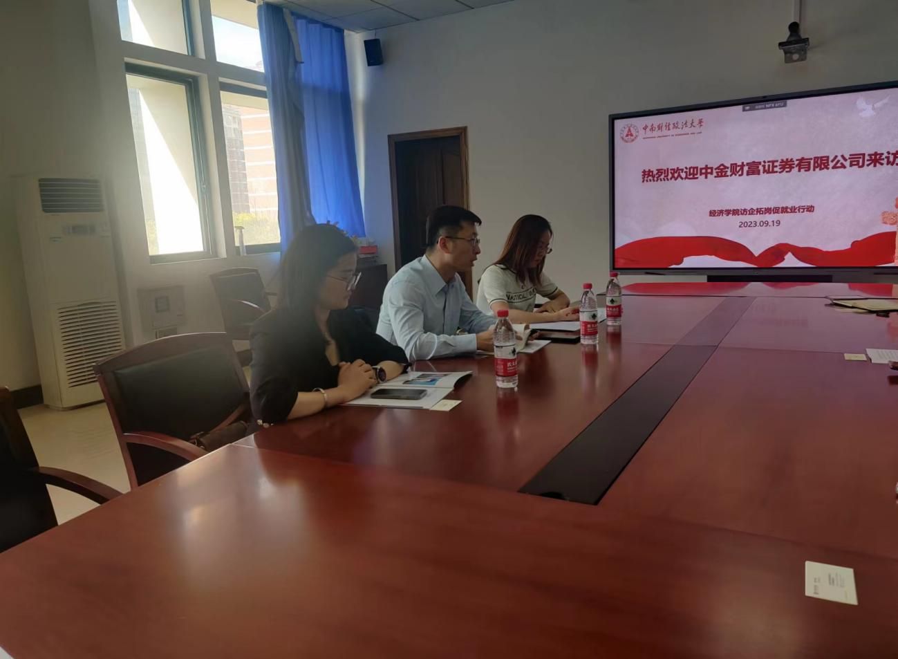 俞凡副书记热烈欢迎中金财富证券有限公司的来访,表示中金财富是行业领先的证券公司,期待通过此次交流加强双方合作,拓展就业资源,共同助力学生的成长成才。