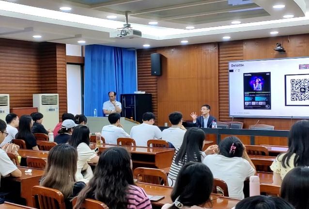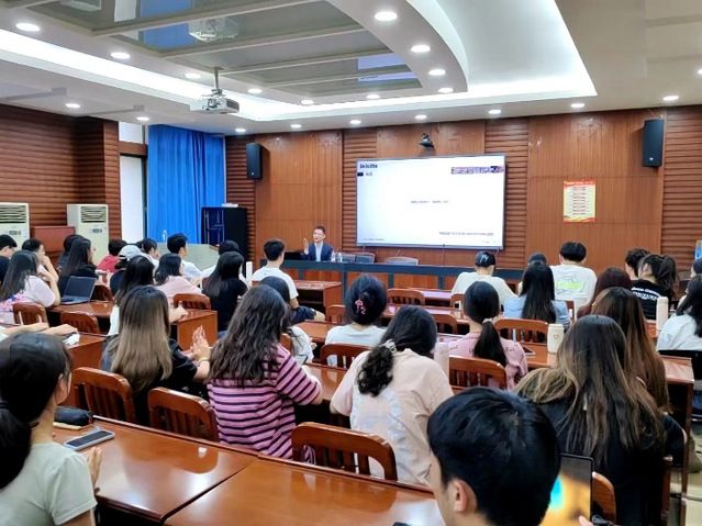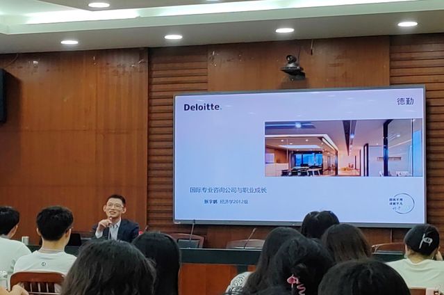 活动伊始,永利集团3044官网欢迎您党委俞凡副书记对张宇鹏师兄做简短介绍,并对其返院参加分享会表示热烈欢迎。张宇鹏师兄2016年毕业于永利集团3044官网欢迎您经济学专业,现任德勤中国公司技术部经理、可持续发展报告卓越中心专家,是中国注册会计师执业会员、香港会计师公会会员、中国注册会计师协会专家组成员、中国证监会深圳监管局外部会计专家、广东省注册会计师协会青年高端人才,持有中国国家法律职业资格。他在审计与鉴证、风险咨询和税务咨询等业务领域有丰富经验,具备综合性多领域的企业服务经验,能够有效提供会计、税法和内部控制整合方案。