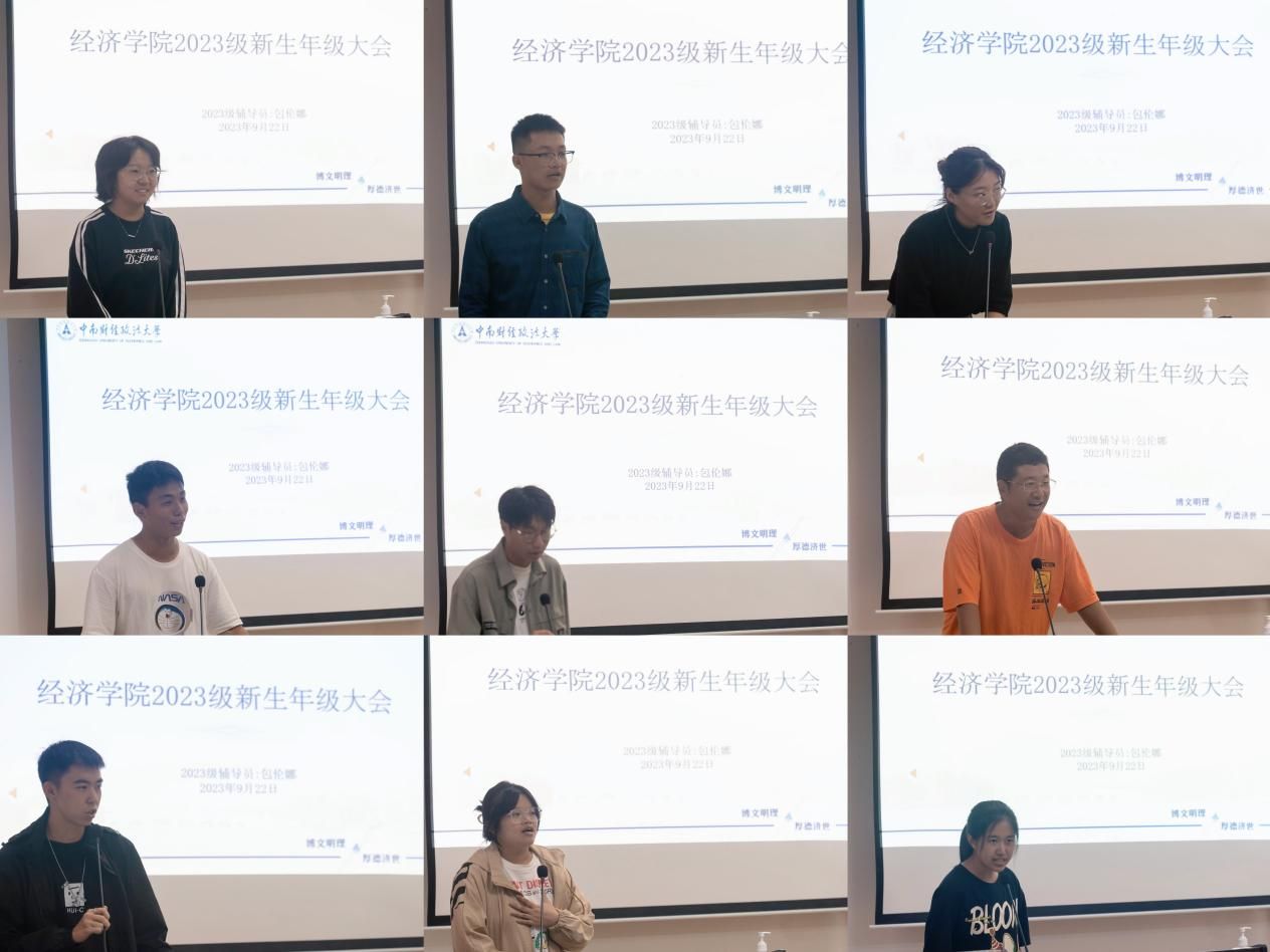 随后,各班班委进行了自我介绍,按照经济2301班、经济2302班、经济2303班、国商2301班、国商2302班、国商2303班、经实班、经法班、经统班的顺序展开。经过自我介绍,同学们对各班委的印象加深,为永利集团3044官网欢迎您2023级本科建设与发展奠定了良好基础。