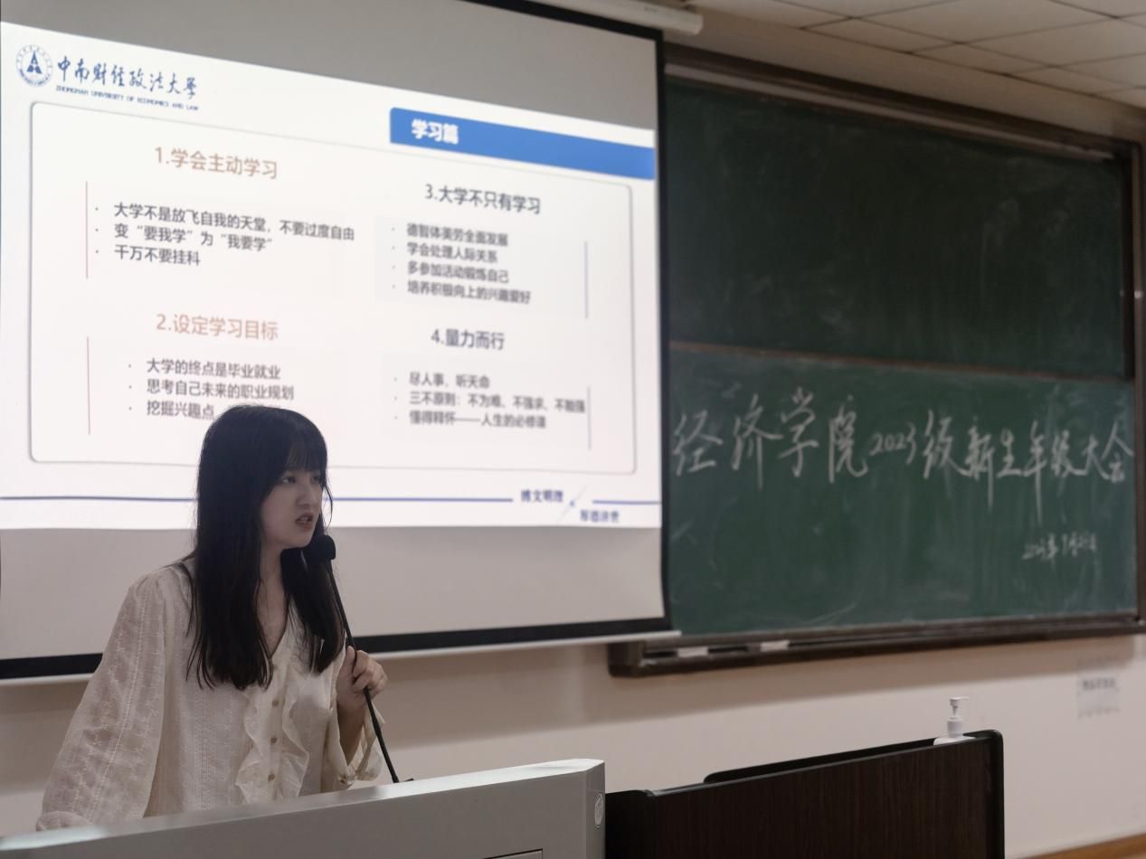 本次会议旨在为同学们提供各方面的实用建议,帮助大家明确大学目标,更快适应大学生活。包伦娜老师从生活篇、学习篇和工作篇三个方面展开介绍。生活上,大学最重要的是学着自己解决时间管理、人际关系等问题,包伦娜老师的演讲深入浅出,以实例讲解学生应以平和、客观的态度对待矛盾,强化人际交往能力。学习上,大学生应当转变学习方式,更多以自主学习为主,同时也要轻装上阵、量力而行,保持健康积极的心态。工作上,包伦娜老师表示会严格遵守规章制度执教,学生也应熟读校规,不得有触犯红线的行为。"先亦师,后亦友",包伦娜老师的守则观念得到了在场同学的广泛认可。