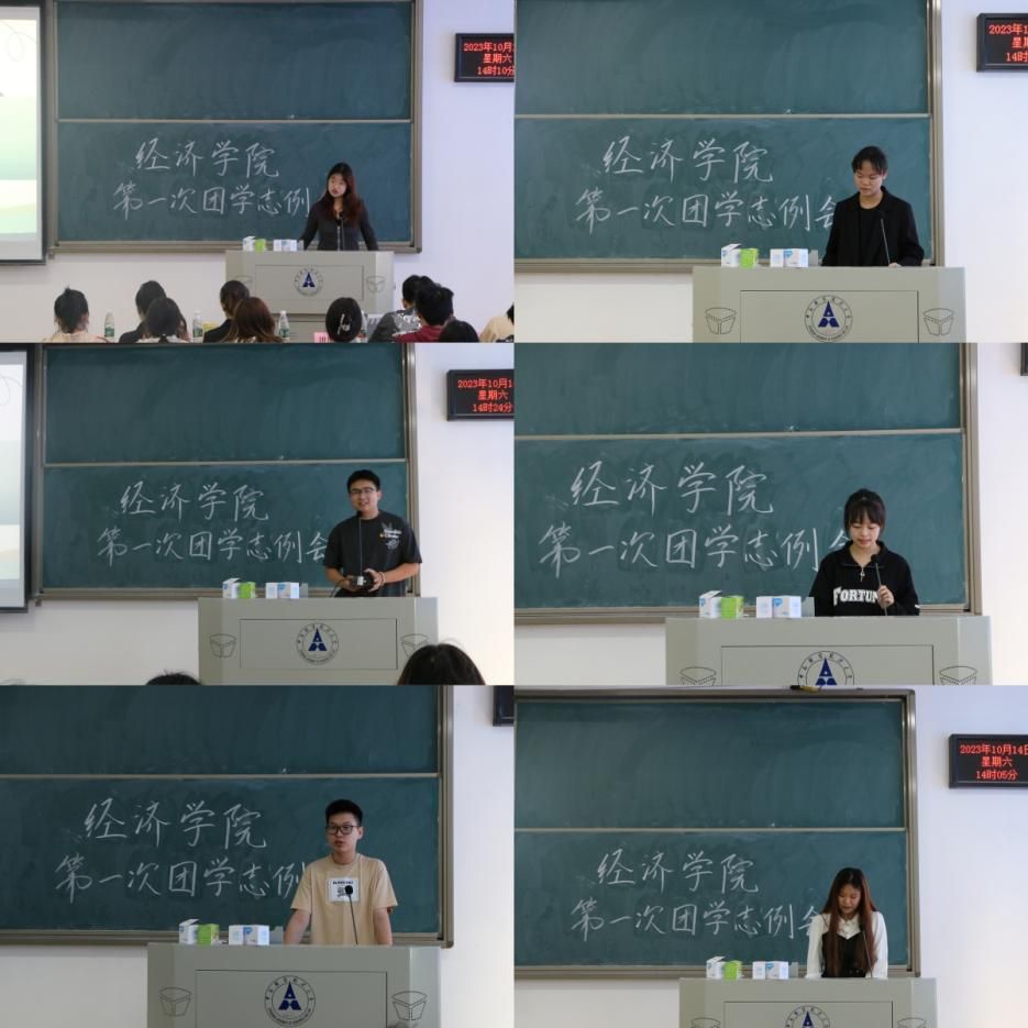 述职环节,志愿者协会会长张雅娟、网宣中心主任田怡可、艺术中心主任杨煜涵、学生会主席彭也轩、学生会主席黄煜楷、学生会主席韩嘉诚依次上台述职,向团学志各部门负责人及学员们提出建议和期许,鼓励大家适当创新、重视实践,同时希望各位新学员在日常学习工作中增强合作意识、学会沟通。