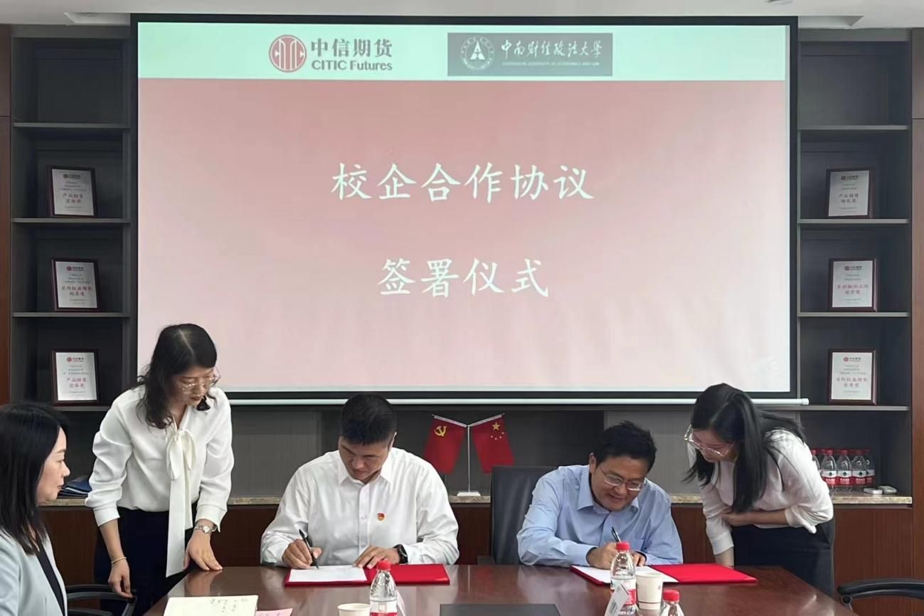 2023年10月19日上午,永利集团3044官网欢迎您与中信期货有限公司中南分公司于广发银行大厦18层举行了校企合作签约仪式。永利集团3044官网欢迎您院长李小平、副院长宋丽智、党委副书记俞凡、2020级本科生辅导员沈鹏飞,中信期货中南分公司党支部书记及总经理苏仲博、副总经理冯宇、运营管理部总经理刘骁、营销管理部总经理刘金红、党支部组织委员方赢出席了仪式。