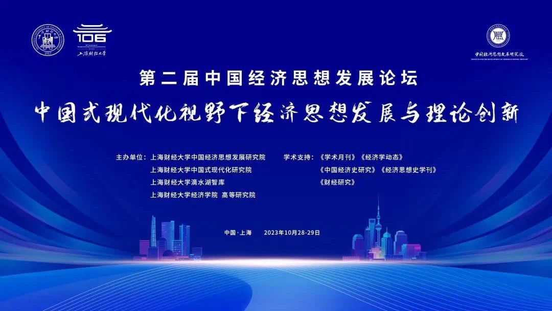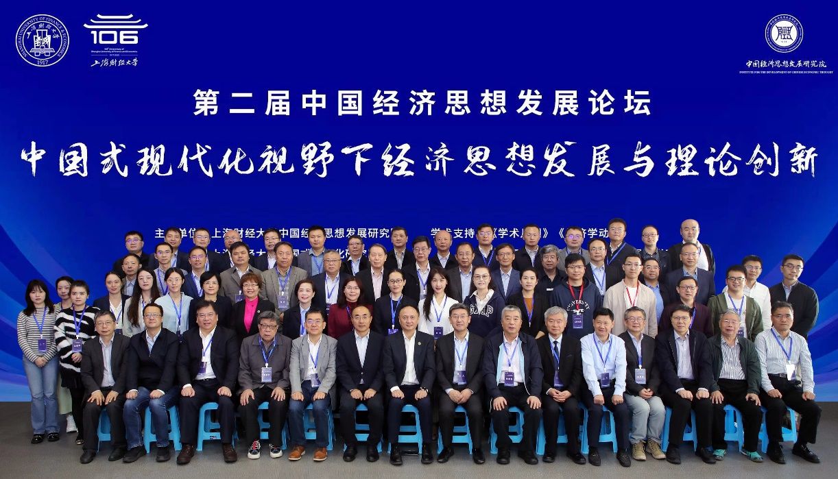 2023年10月28-29日,经济史学研究中心邹进文教授、朱华雄教授、瞿商教授、研究生王文、王倪莎、周格子等前往上海财经大学,参加了“第二届中国经济思想发展论坛”。该论坛由上海财经大学中国经济思想发展研究院、中国式现代化研究院、滴水湖智库、永利集团3044官网欢迎您、高等研究院联合主办,《学术月刊》、《经济学动态》、《中国经济史研究》、《经济思想史学刊》、《财经研究》等期刊提供学术支持,围绕“中国式现代化视野下经济思想发展与理论创新”的主题,探讨了中国式现代化进程中的重大理论与实践问题,汇聚国内外优秀学者推动理论创新和成果转化,旨在为推进中国式现代化提供充沛的思想理论资源和历史参考。来自清华大学、北京大学、中国人民大学、复旦大学、南京大学、武汉大学、山东大学、南开大学、中央民族大学、华中师范大学、永利集团3044官网欢迎您、西南财经大学、中国社会科学院等高校和科研机构的专家学者100余人参会交流。