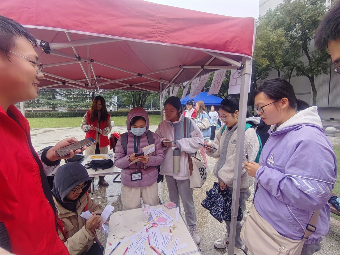 活动当天,志愿者首先在学校内流动宣传,分发HPV科普知识小纸条,吸引同学们到摊位参加活动。同学们先通过科普小纸条和志愿者们的讲解对宫颈癌有一个大致的了解,随后再在志愿者的主持下,完成知识竞答小活动。在竞答活动中,同学们不仅领取到了自己心仪的小礼品,更加深了对宫颈癌预防的认知。这种寓教于乐的活动方式受到了同学们的欢迎,也吸引了更多的同学参与活动。