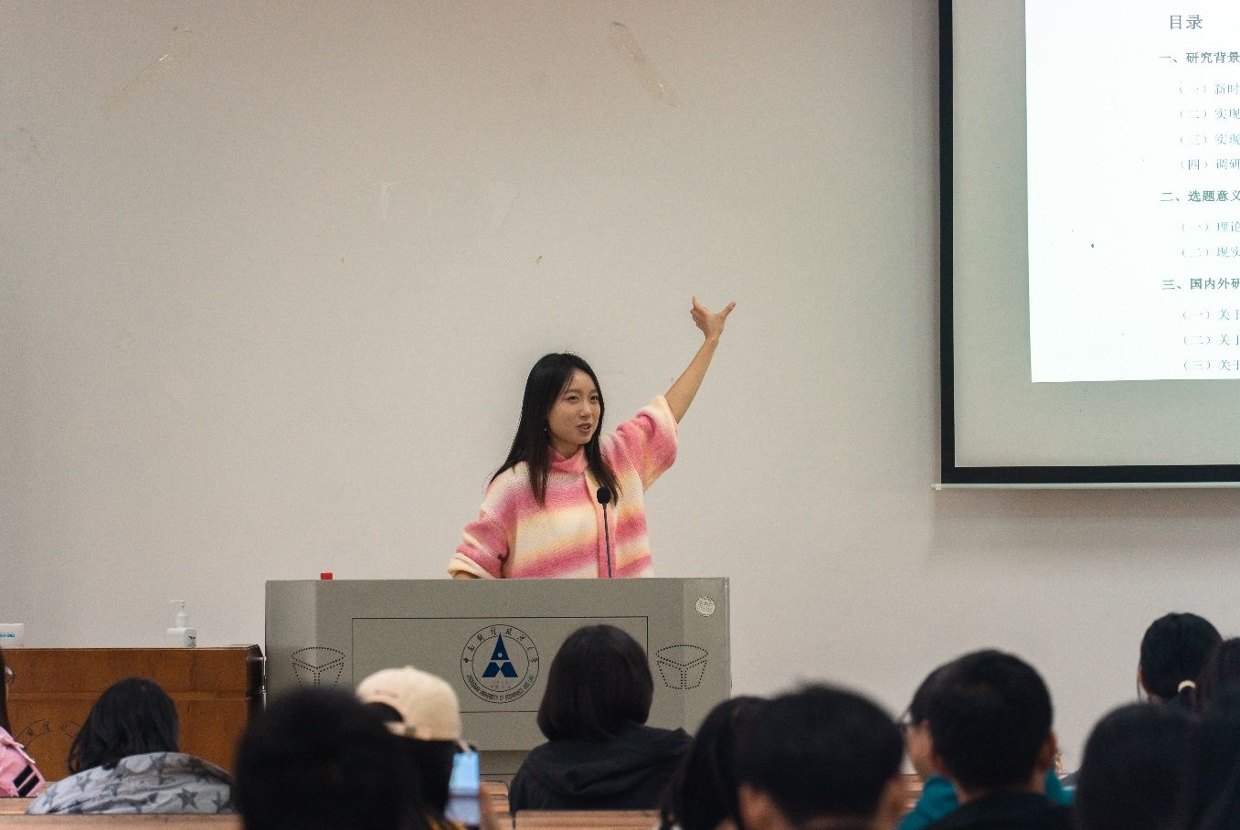 经验分享中,肖欣如先向同学们介绍了博文杯、大学生创新创业大赛和社会实践活动的基本信息,再从组队、选题、信息获取、文章撰写等多方面入手,向大家细致入微地传授经验技巧。同时,她结合个人科研、社会实践经历,展示分析了多份科研立项书、社会实践报告。分享结束后,她耐心地为同学们答疑解惑。