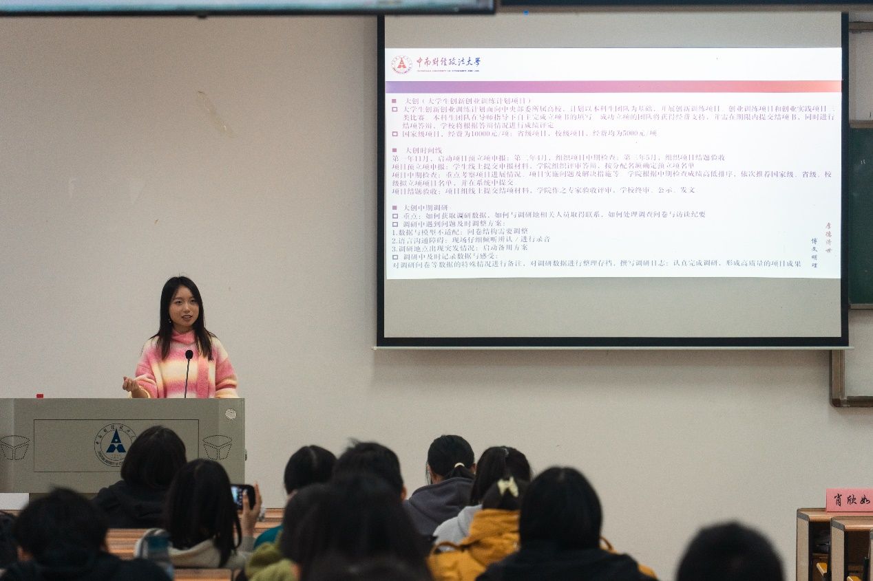 (学生记者 胡漪 摄影 何胤良)铅华褪尽,层林尽染。为进一步激发永利官网学生开展科学研究、社会实践的热情,营造良好的科研创新氛围,永利集团3044官网欢迎您“博文 大创 实践活动” (即“博文杯”“大学生创新创业大赛”与“社会实践活动”)指导会于11月18日下午在我校首义校区文泽楼303教室举行。永利集团3044官网欢迎您经济学拔尖人才实验班2020级本科生肖欣如担任主讲人,2023级全体学生到场参会。
