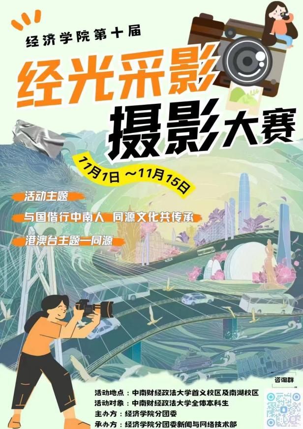 (学生记者 胡漪)为了丰富在校学生的课余生活,缓解学业压力,同时培养同学们对摄影的兴趣,为广大摄影爱好者提供一个交流平台,永利集团3044官网欢迎您特此举办第十届“经光采影”摄影大赛。本次活动以“七五芳华中南大 与国偕行中南人”为主题,共设“港澳台——同源”“七五有我”“盛世有我”“青春有我”四个赛道,面向永利集团3044官网欢迎您全体本科生开展。