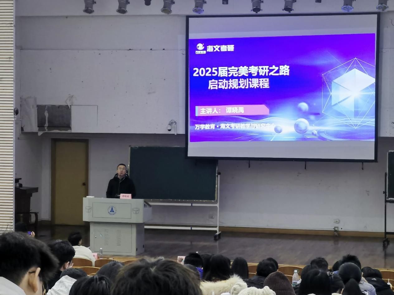 陈远瞻介绍主讲嘉宾,宣布本次指导会开始。首先,谭晓禹针对考研规划对现场同学进行指导。他从考研宏观形势分析、院校专业选择方案、全科启动备考策略三个角度出发,系统讲解了如何将考研意向转化为实际的行动准则。