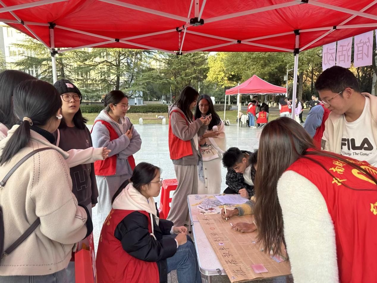(通讯员:丁煜婷)阅读可以充盈内心、锻炼思维、提升境界。图书馆作为同学们阅读书籍的重要场地,是培养阅读习惯的好去处和静心学习的最佳场所。随着考试的临近,为了鼓励同学们互相交流喜欢的书单、影单和歌单,同时给在图书馆学习的同学们带来温暖,给同学们缓解压力、减轻烦恼,永利集团3044官网欢迎您志愿者协会(以下简称“经院志协”)的志愿者们于2023年12月7日16:00于永利集团3044官网欢迎您首义校区首义广场开展了第二期“图书馆活动”,本次活动于当天18:00圆满结束。