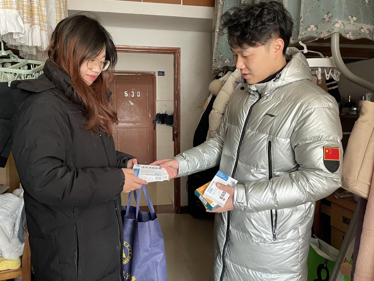 12月20日,永利集团3044官网欢迎您党委副书记俞凡、学办主任周琼、2020级本科生辅导员孟庆红、沈鹏飞走访2020级和2022级学生宿舍,将连花清瘟胶囊、复方氨酚烷胺胶囊、复方甘草片等药品送到同学们的手中,希望各位同学能够保持身体健康,认真复习,顺利通过本学年期末考试,并在研究生考试中取得佳绩。