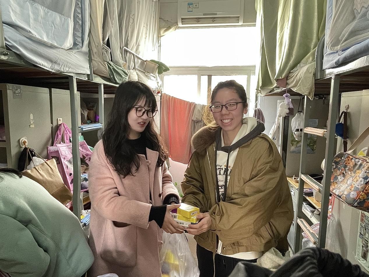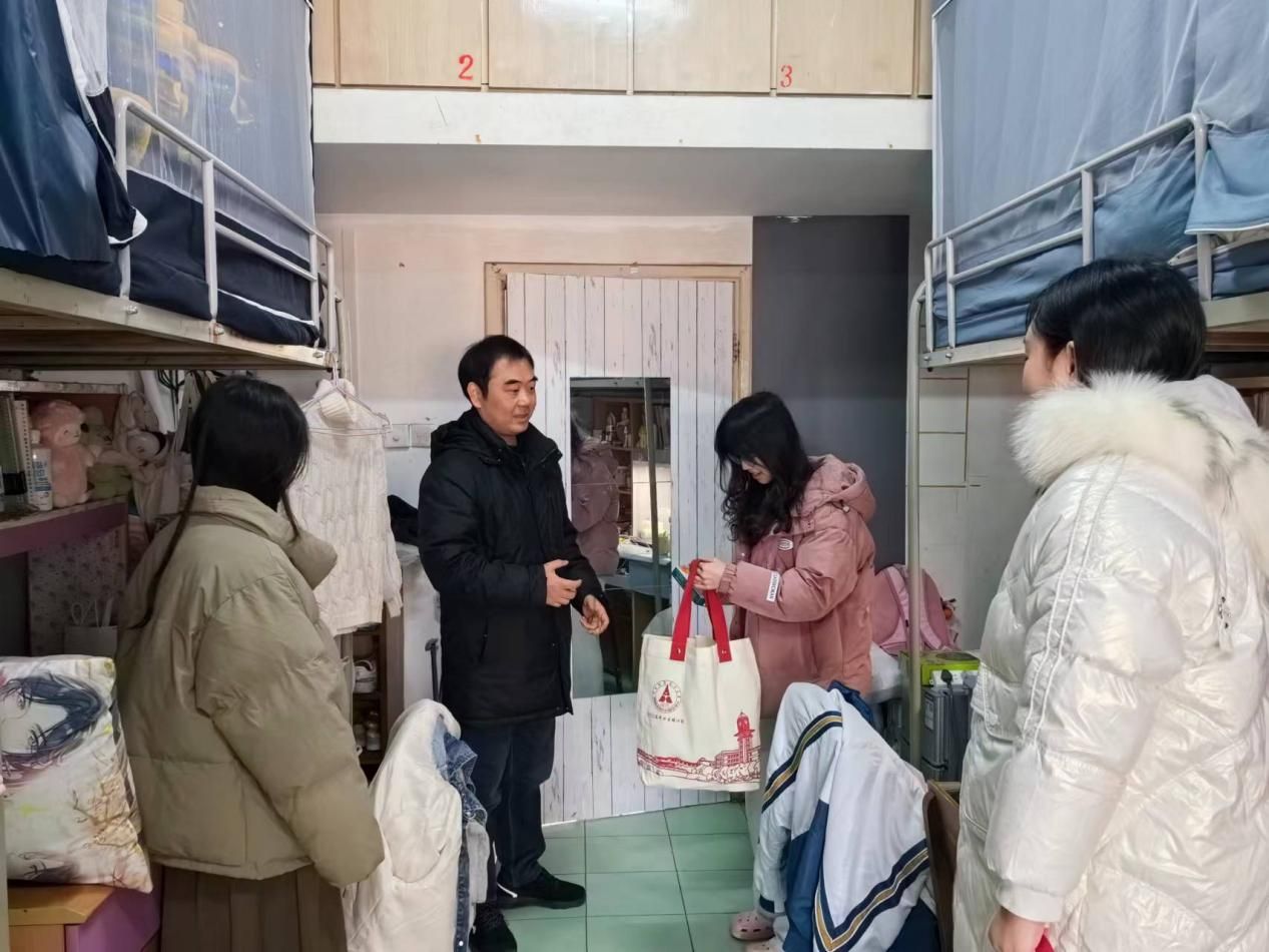 12月21日-22日,2021级本科生辅导员陈远瞻、2023级本科生辅导员包伦娜分别走访2021级和2023级学生宿舍,为备考中的同学们送上季节性药品,并围绕学习方法、复习计划、职业规划、校园生活等问题与各位同学展开交流,同时预祝同学们新的一年里万事顺遂,学业有成。