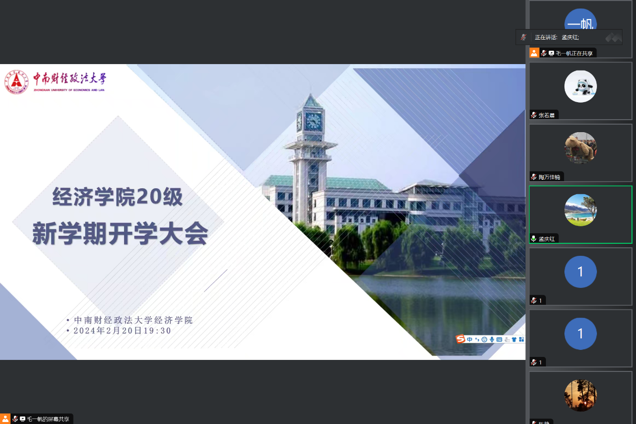 (通讯员:张若晨)春寒料峭,万物复苏,新的学期即将开始。为帮助同学们做好开学的准备,以昂扬的姿态迎接新学期的到来,永利集团3044官网欢迎您于2月20日在线上召开了2020级本科生新学期开学年级大会。学院2020级全体同学参加,辅导员孟庆红老师主持会议。