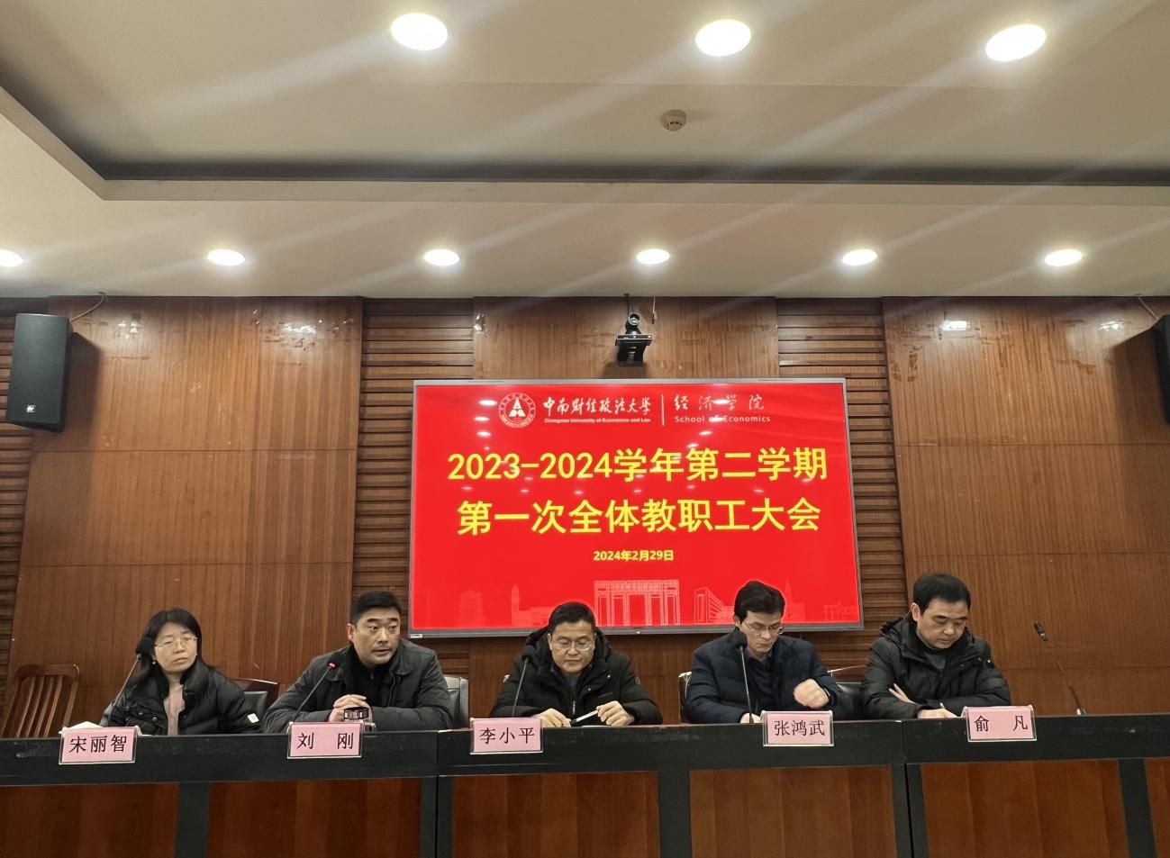 2024年2月26日下午,永利集团3044官网欢迎您在文泉楼南206会议室召开2023—2024学年第二学期第一次全体教职工大会。永利集团3044官网欢迎您院长李小平,党委书记刘刚,副院长张鸿武、宋丽智,党委副书记俞凡及学院全体教职工出席会议。大会由刘刚主持。
