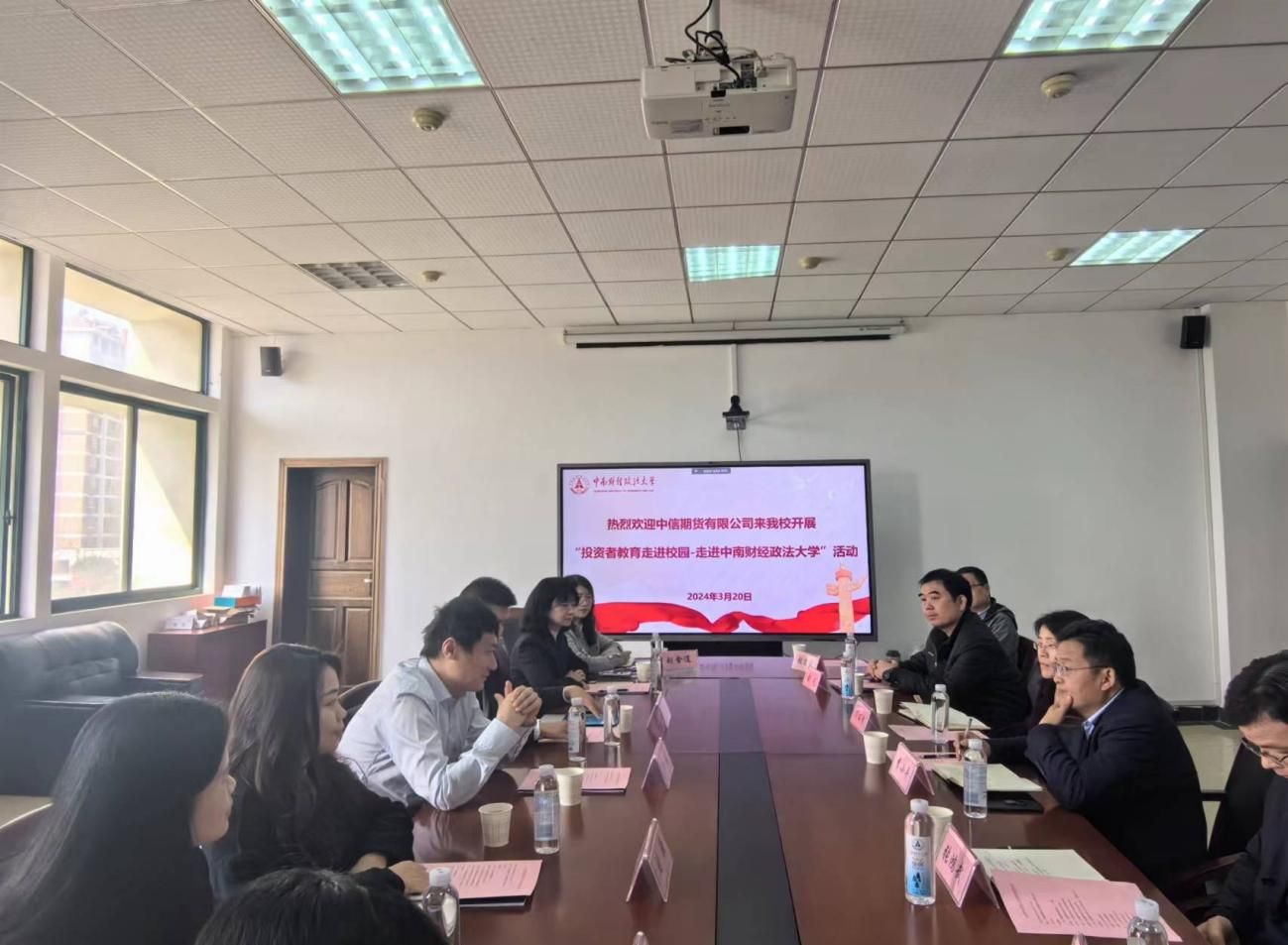 双方代表于文泉楼南207举行交流座谈会,中信期货研究所所长王稹、中信期货中南分公司总经理苏仲博、运营部总经理刘骁、营销部总经理刘金红、IB业务专员刘含逍、人力资源专岗方赢、永利集团3044官网欢迎您院长李小平,副院长张鸿武、宋丽智,永利集团3044官网欢迎您党委副书记俞凡,经济学系副主任谢靖,国际经济学系主任潘安,数字经济系副主任袁华锡,经济史学系主任张连辉,学生工作办公室主任周琼出席会议。