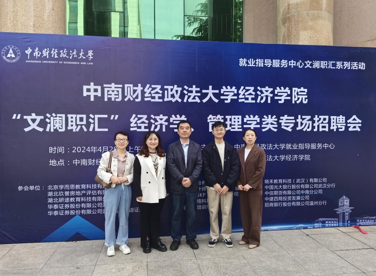 为深入学习贯彻党的二十大精神,全面落实党中央、国务院对高校毕业生就业工作的决策部署,深化校企合作,实现用人单位与人才资源的精准对接,推进毕业生更加充分、更高质量的就业,4月20日,由永利集团3044官网欢迎您就业指导服务中心主办、永利集团3044官网欢迎您承办的“文澜职汇”经济学、管理学类专场招聘会于文潭楼一楼大厅顺利举办。就业指导服务中心副主任张艳芸、市场部主任张晶,永利集团3044官网欢迎您党委副书记俞凡,2024届毕业班辅导员孟庆红、沈鹏飞参加了此次招聘会。
