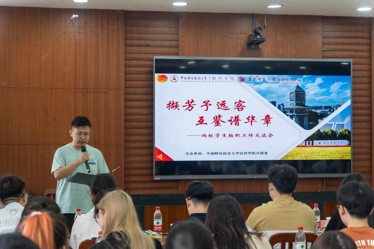 (学生记者 龚美晨 摄影 何胤良)五色交辉,相得益彰;八音合奏,终和且平。为更好地探讨分团委学生会(以下简称“团学”)工作的新思路、新方法,不断提升团学工作的质量水平,永利集团3044官网欢迎您团学组织与华中师范大学公共管理学院团学组织携手举办的“撷芳予远客,互鉴谱华章”团学组织工作交流活动于5月12日10时在我校文泉楼206会议室顺利开展。本次活动由永利集团3044官网欢迎您分团委组织部主办,两校团学组织学生干部参与本次活动,永利官网组织部成员刘煊凯担任主持人。