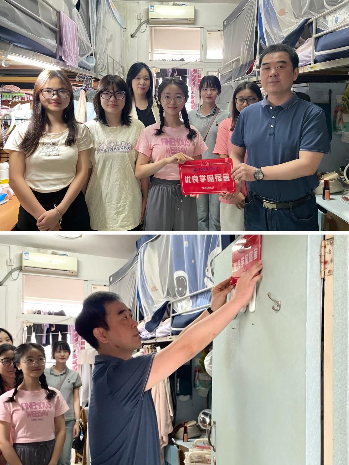 (通讯员 包伦娜 学生通讯员 吴仕涵)为进一步加强学风建设,营造积极向上的寝室文化氛围,6月5日上午,经济学院党委副书记俞凡、学生工作办公室主任周琼、2023级本科生辅导员包伦娜前往南湖校区滨湖宿舍,为“优良学风宿舍”授牌,表彰在学风建设中表现突出的宿舍集体,进一步营造良好育人氛围,贯彻落实立德树人根本任务。