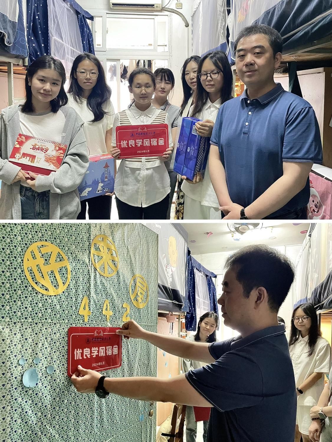 与寝室学生交流后,俞凡副书记为荣获“优良学风宿舍”称号的寝室成员颁发奖牌及奖品,鼓励大家继续保持优良的学习态度,发挥榜样示范作用,带动周围同学共同进步,为学院的学风建设贡献力量。同时,他还就如何更好地营造寝室文化氛围、促进寝室成员之间的团结互助等方面提出了具体建议。