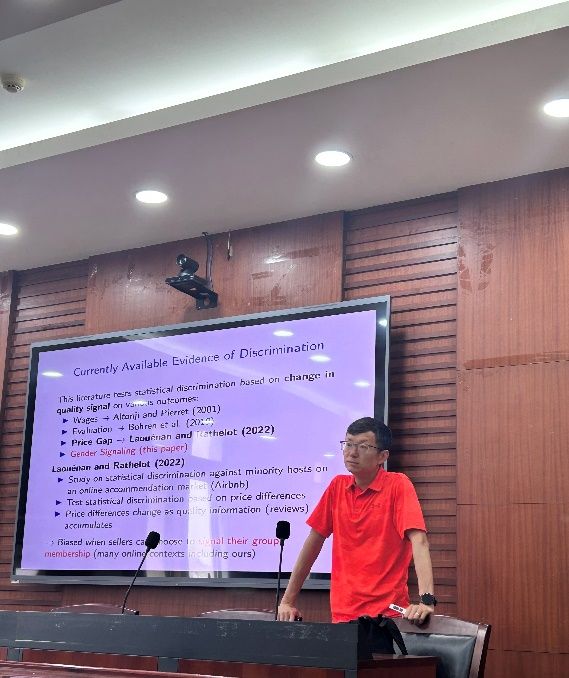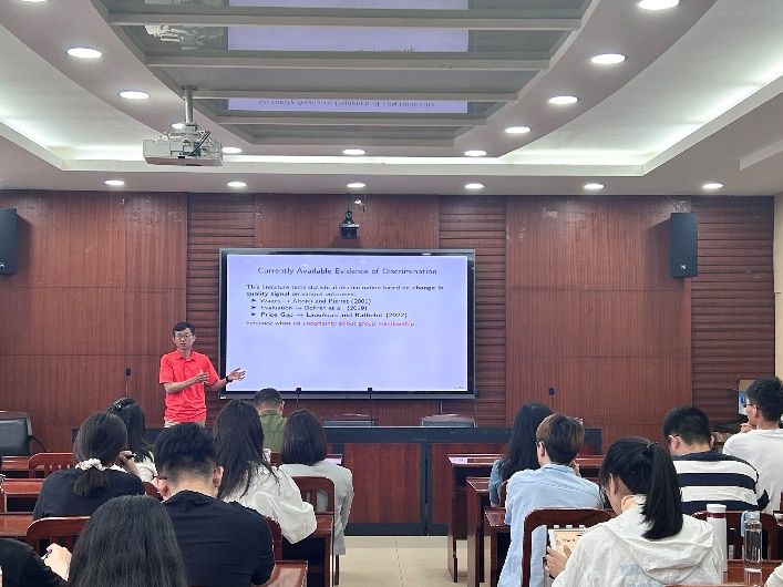 何浩然教授首先以歧视为出发点,讲述了我们身边存在的一些歧视现象如性别歧视、价格歧视等等。在当今社会,知识问答形式逐渐兴起,许多问答平台也存在着歧视,它们通常以评价为衡量的标准。从而引申出在劳动市场上也存在着歧视,特别是性别歧视的主题。