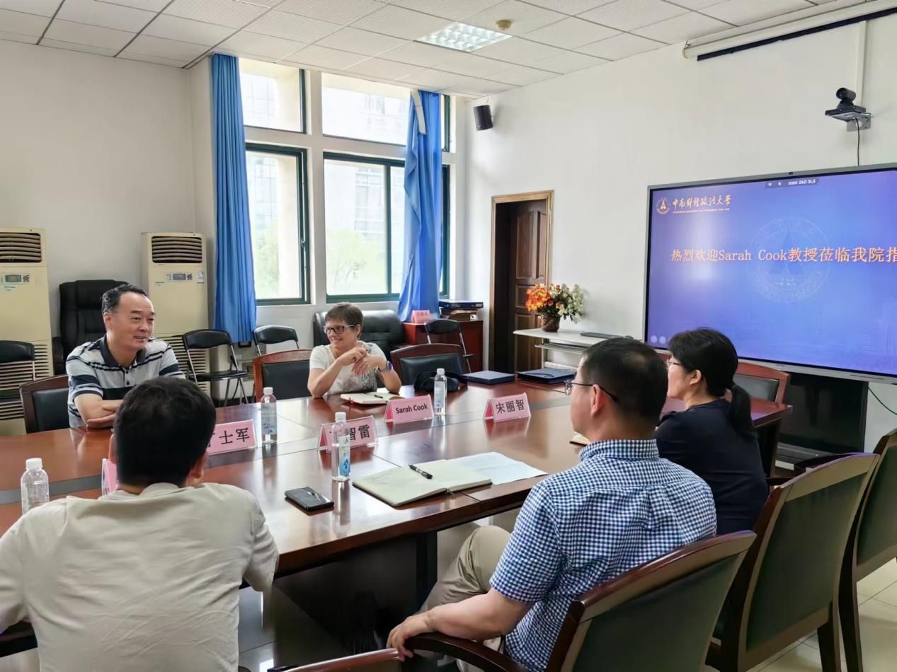 石智雷对Sarah Cook教授来访表示热烈的欢迎,感谢丁士军教授为永利集团3044官网欢迎您搭建了此次交流的平台。石智雷为Sarah Cook教授详细介绍了永利集团3044官网欢迎您的历史以及学院在学科建设、教育教学、人才培养、国际合作等方面取得的成绩,希望以此次交流为契机,未来在学科建设与发展、学术研究、国际交流等方面进一步加强沟通与合作。