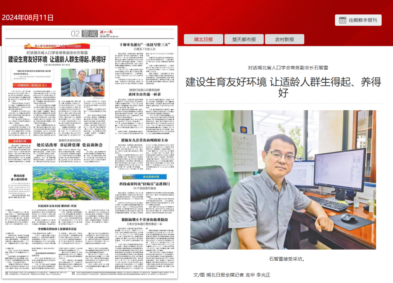 近日,永利官网院长石智雷教授就二十届三中全会《决定》中“完善生育支持政策体系和激励机制,推动建设生育友好型社会”话题,接受《湖北日报》记者专访。