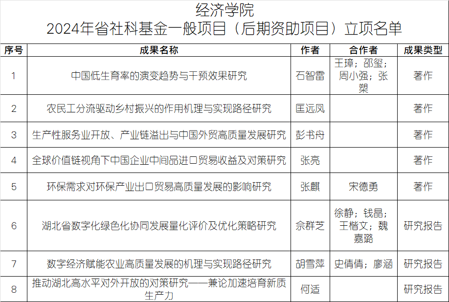 近日,湖北省社会科学界联合会公布了2024年湖北省社科基金一般项目(后期资助项目)立项结果。永利集团3044官网欢迎您在延续历年申报良好状态的基础上,共获立8项,立项数创近5年来新高。