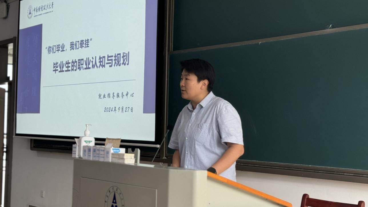 随后,学校就业指导服务中心副主任贾晓就职业认知与规划为毕业生们进行详细讲解。她通过具体的就业数据分析了当前就业市场的形势和需求,分析当前毕业生求职的“两大问题”,同时根据毕业生在就业时出现的问题,提供实用的应对技巧与合理的应对心态。