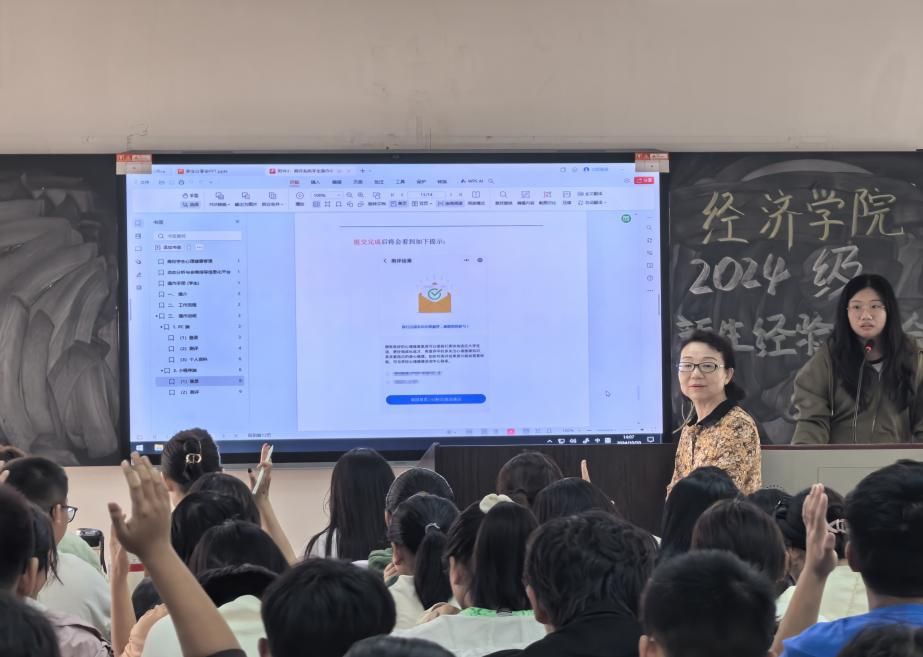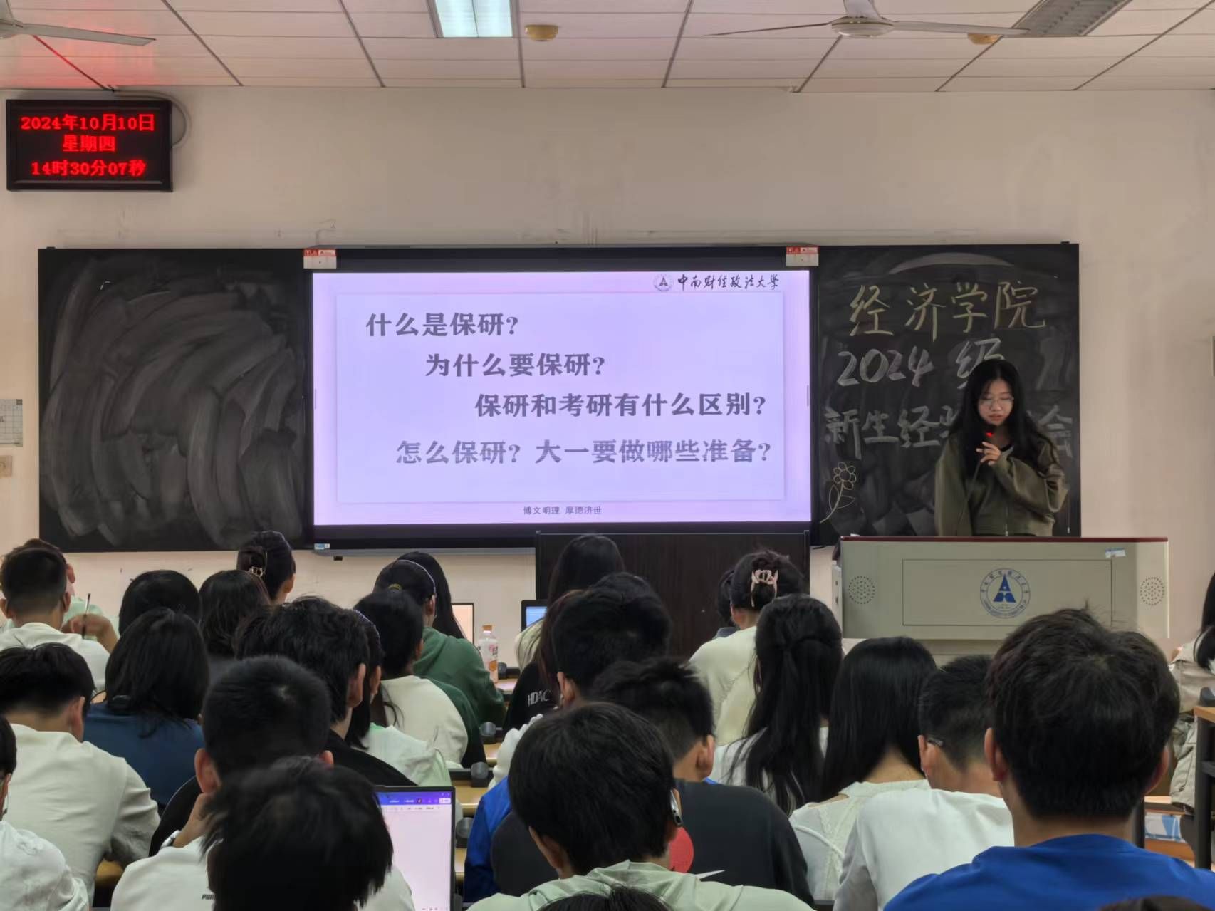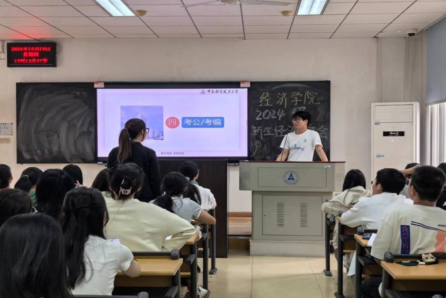 为帮助2024级新生尽快适应大学生活,明确奋斗目标,2024年10月10日下午14时,永利集团3044官网欢迎您2024级新生经验分享会在文润楼201室顺利开展。本次经验分享会由来自经实、经法、国商班的优秀师兄师姐分别从留学、保研、考研、考公、就业等五个方向进行分享。辅导员孟庆红老师携永利集团3044官网欢迎您2024级国商一至三班及经法经统双学位实验班全体本科新生按时到场参加。