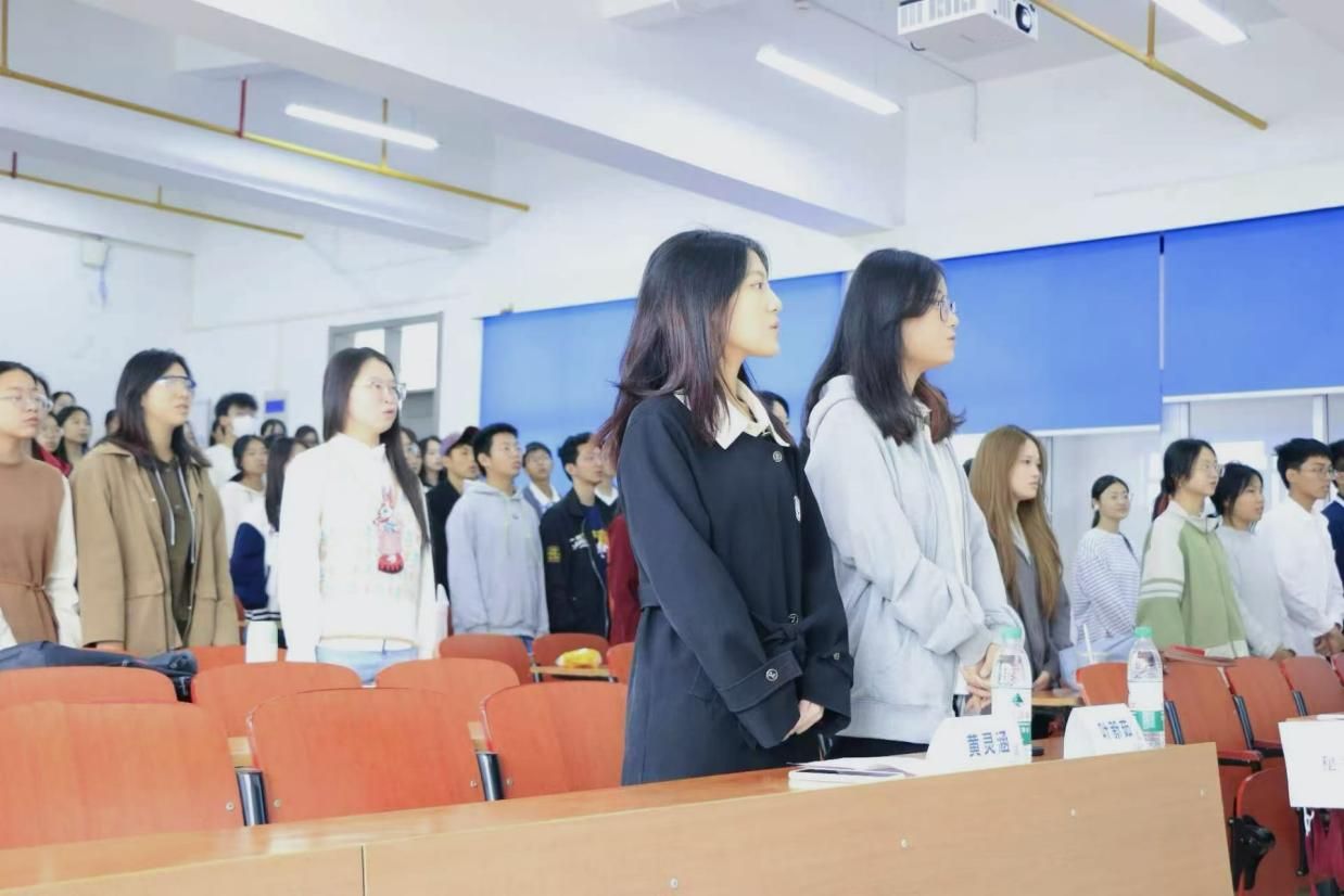 例会伊始,全体成员起立奏唱共青团团歌,洪亮的歌声展现了永利官网学子的青春激情与坚定信仰。