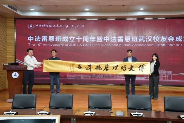 在副校长邹进文教授以及各位领导的牵头下,进行了盛大的揭牌仪式,宣告中法雷恩班武汉校友会正式成立。