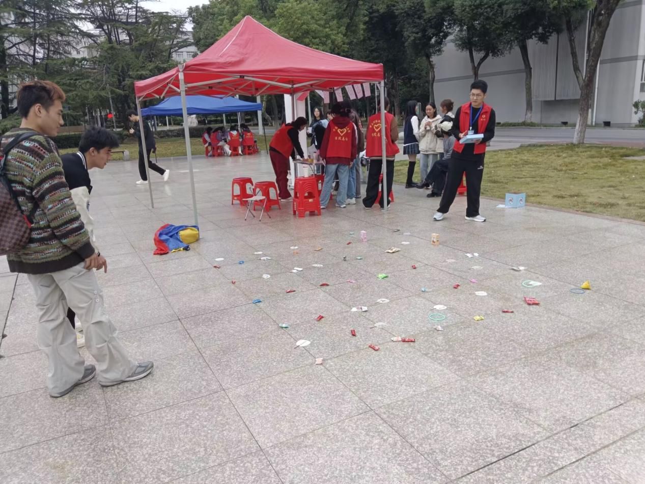 活动当天,志愿者们携带物资提前到达了首义广场,并布置好了摊位。志愿者们有序分工,负责流动宣传的成员们前往到校园的各个地方,热情地向来往的同学们介绍这次活动,另一组的成员们则留守在固定摊位上,分发传单并且积极邀请路过的同学参与活动,号召大家一起为孩子们献出爱心,并且负责好摊位上小奖品的送出与记录。