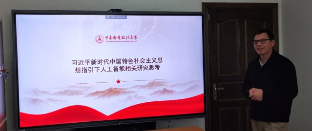 紧接着,胡德状老师结合自身的研究方向,以“习近平新时代中国特色社会主义思想指引下人工智能相关研究思考”为主题,就人工智能与数字经济的发展及其社会影响进行了深入的分享和探讨。在此次讲座中,胡德状老师首先对习近平总书记及中共中央关于人工智能的重要讲话和指示做了详细的回顾,特别提到了习近平总书记在不同场合对人工智能的战略地位和发展要求的阐述。习近平强调,人工智能是推动科技革命和产业变革的关键力量,中国必须抓住这一机遇,推动人工智能与实体经济的深度融合,加速发展新动能。此外,习近平总书记还强调了构建开放包容的国际数字经济合作关系的重要性,以及积极应对人工智能带来的就业、收入分配等社会问题。