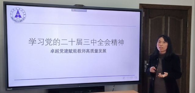 为深入贯彻党的最新理论成果,推动教师队伍高质量发展,数字经济党支部于10月24日下午15:30在文泉楼南209室组织《坚定不移推动改革创新,为高质量发展增添动力》专题学习活动,集中学习党的二十届三中全会精神。此次活动的目标是通过详细阐释党的二十届三中全会精神,激励教师们的工作激情,并为教育领域的繁荣发展提供新的动力。