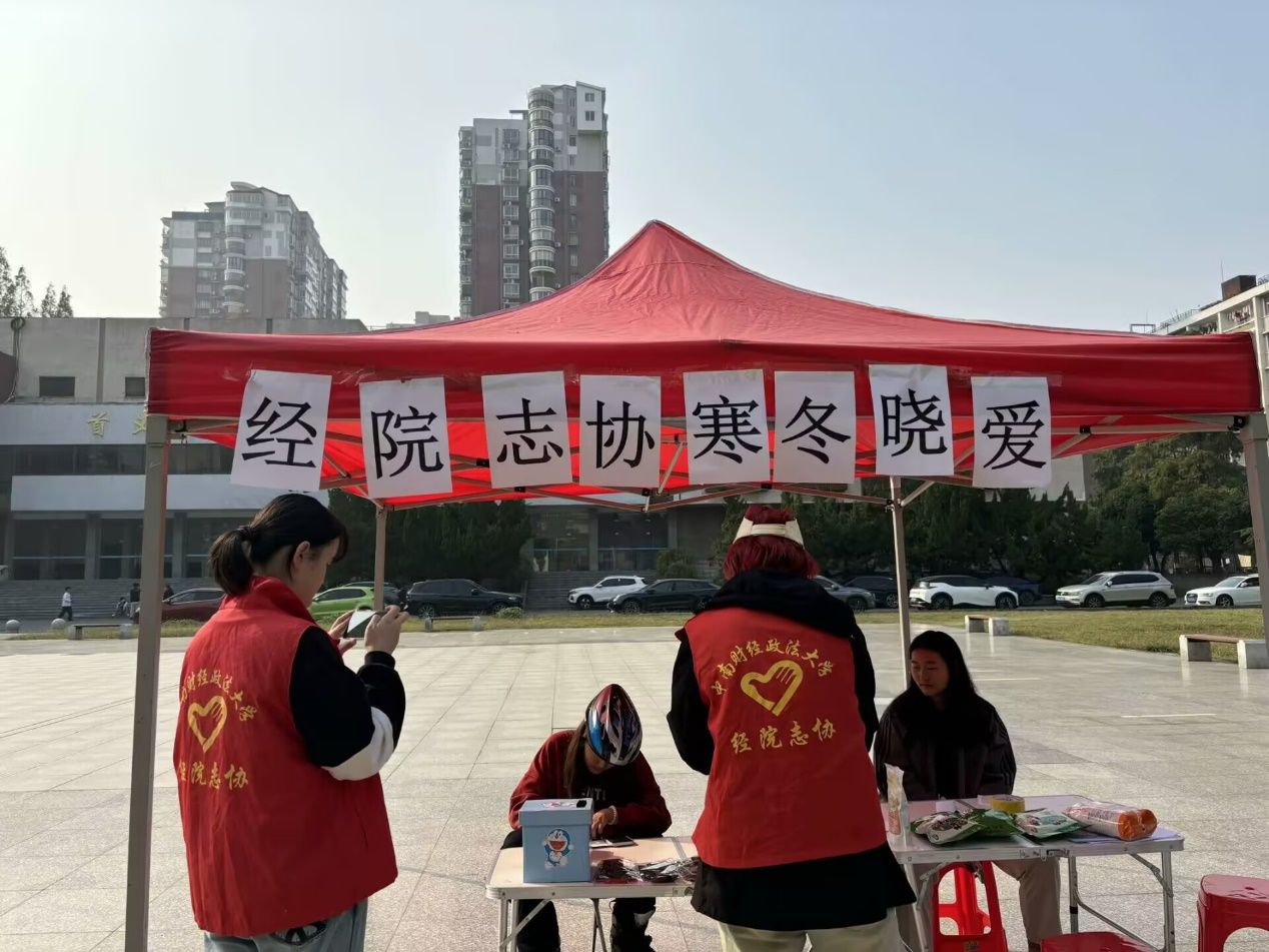 (通讯员:杨清堤)在校园日常生活中,教职工们扮演着举足轻重的角色,他们不仅是“甘为孺子育英才,克勤尽力细心裁”的谆谆教诲者,也是“点滴关怀撒温柔,微笑陪伴渡风雨”的贴心关怀者。随着冬日寒风渐起,温度骤降,为了在严冬中为教职工与同学们驱散寒意、传递温暖,永利集团3044官网欢迎您志愿者协会(以下简称“经院志协”)于2024年11月2日在永利集团3044官网欢迎您首义校区首义广场成功举办了本次寒冬晓爱活动,该活动于下午17:00圆满结束。
