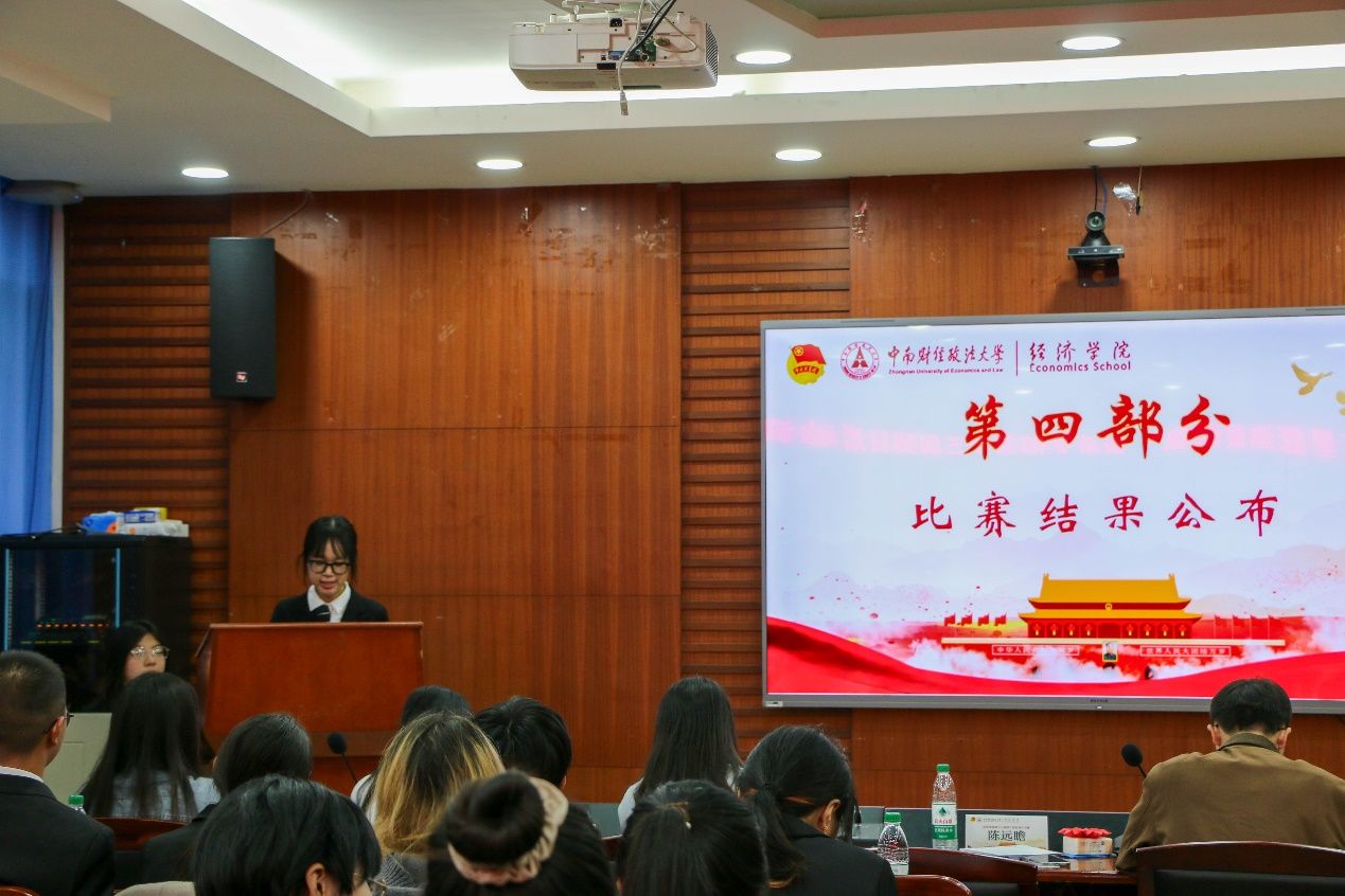 根据比赛统计结果,主持人公布获奖名单。国商2301班荣获一等奖,经法2401、经济2303班荣获二等奖,经统2301、经济2401、经济2302、经法2301班荣获三等奖。
