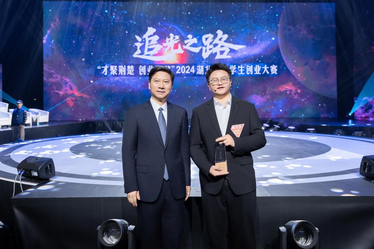 (通讯员 陈远瞻 摄影 何胤良 湖北卫视)12月26日“才聚荆楚·创业湖北”2024大学生创业大赛在湖北省电视台演播厅举行,湖北省委副书记、省长王忠林,副省长蔚盛斌,我校校长、党委副书记朱方伟,院士专家李元元、金梅林等以及各知名企业、投资机构、产业园区、创业企业代表出席参加活动。永利官网2021级本科生杨浩然(金领学社创始人)荣获优胜奖,获得创业扶持资金15万元,这也是我校三年来唯一一支进入十强的团队!