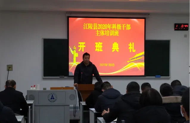 2021年1月6日下午,江陵县2020年科级干部主体培训班在我校首义校区正式开班,来自江陵县委党校的51名县各部门领导干部在我校进行为期四天的培训学习。永利集团3044官网欢迎您院长助理陈立兵、朱巧玲教授、江陵县委党校办公室主任邵云芳、江陵县委党校教务科研股科长盛颖出席开班仪式,永利集团3044官网欢迎您院长助理陈立兵主持仪式。