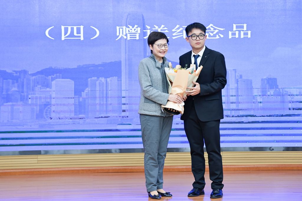 学校学生代表向林郑月娥女士赠送鲜花,表达诚挚感谢。