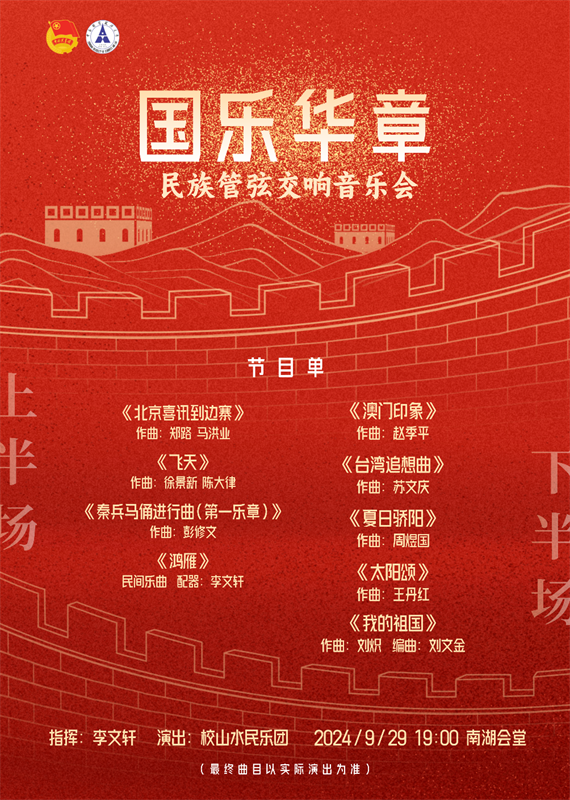 正值中华人民共和国成立75周年,我校特举办本次音乐会,充分展现民族音乐、红色音乐的魅力,带您领略祖国山河的多姿风光、感受时代的前进足音,期待与您一同庆祝祖国华诞,再奏新华章!